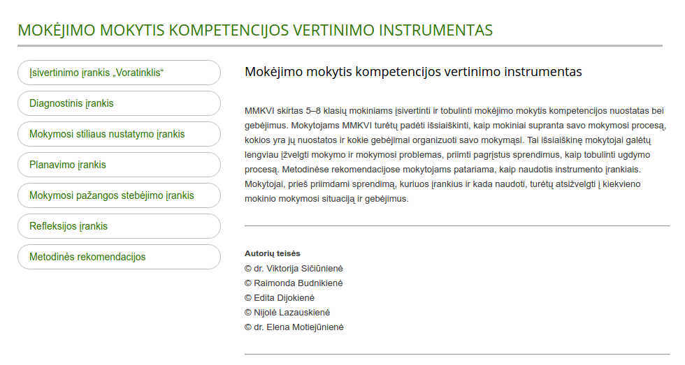 Mokėjimo mokytis vertinimo ir įsivertinimo instrumentas (MMKVI) skirtas 5–8 klasių mokiniams įsivertinti ir tobulinti mokėjimo mokytis kompetencijos nuostatas bei gebėjimus.